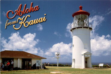 The postcard features a photograph of the Kilauea Lighthouse in Kauai, taken by Mark Fay and published by Hawaiian Service, Inc. The lighthouse is a…