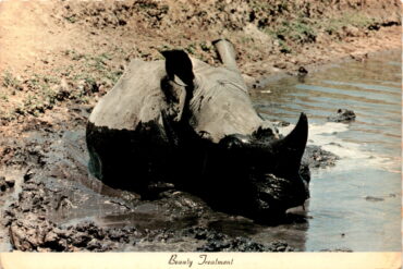 The postcard advertises a unique experience called the Beauty Treatment Safari at Lion Country Safari in California. Lion Country Safari is described as America’s Authentic…